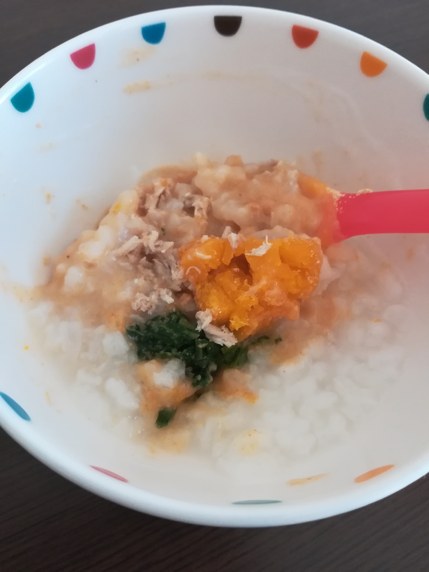 お米のかわりに食べる6種の彩り野菜を 離乳食中期のおかゆにツナを混ぜるレシピで作ってみた 知育プット